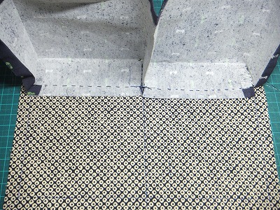 縫い代を底面に貼り付けるので、余分な部分をカットして、