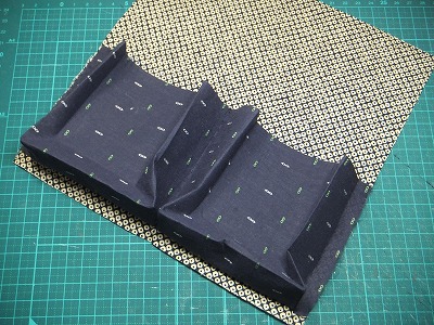 ポケット二つが横につながった状態で組み立てるので、ちょっと厄介です。