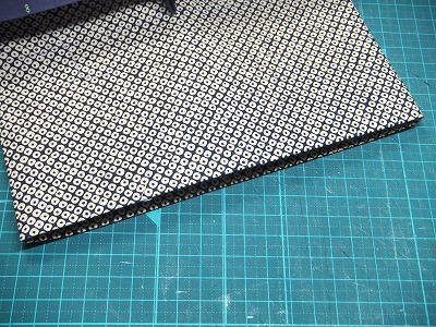 本体の生地はこれです。目がちかちかするくらい細かな模様が続いているので、買ったはいいもののもてあましている状態の生地です。