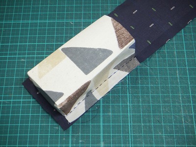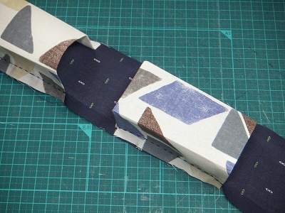 本体の生地は、前回ポケットに使った生地です。ちょうど縦に長く残っていたので、使います。