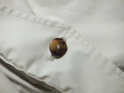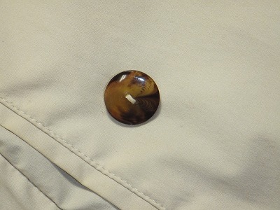 そこで、今回はそのボタンを付け替えます。無くなった片方だけだと、バランスが良くないので、両方とも帰ることにしました。ついでに、ボタン穴かがりもします。
