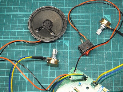 音量調整用の可変抵抗器と、周波数同調用の可変抵抗器を繋ぎました。これもソケット方式になっていて、差し込むだけです。