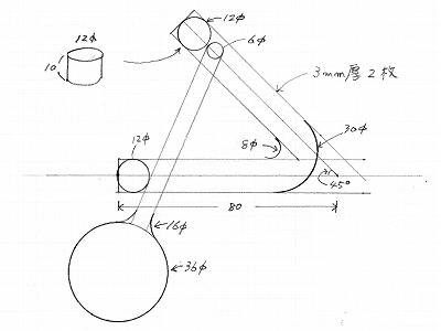 3ミリ厚のプラ版と12ミリの丸棒を使って設計しました。