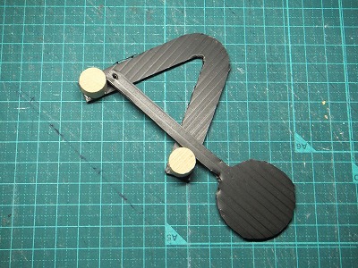 これをV型にのり付けします。さらに振り子の位置合わせをして、