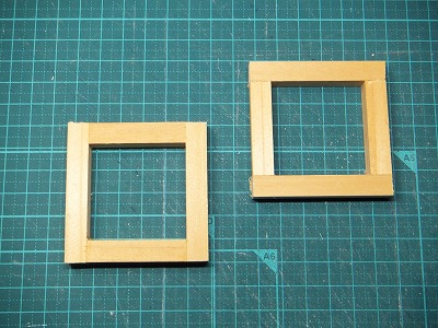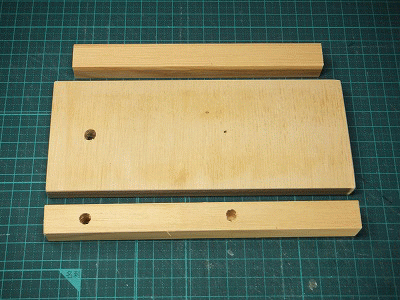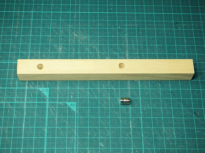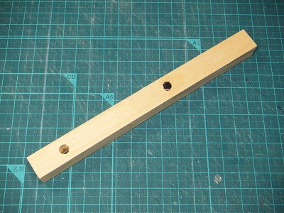 16mmの角棒と12mm厚の合板をカットして、2mmと6mmの孔を空けました。