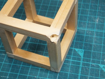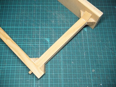 さらに三角の補強材を接着しました。実際はそんなに力がかかるところでは無いのですが、見た目だけです。