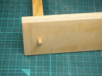 次にハンガーの縦棒の上下に6mmの丸棒を適当な長さで埋め込みます。これはダボ代わりです。
