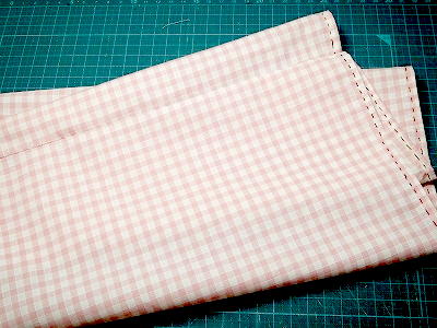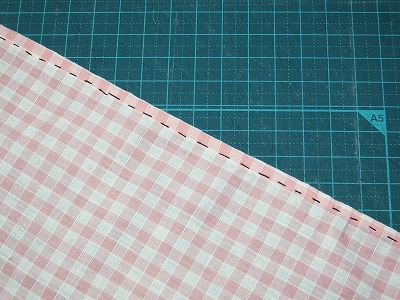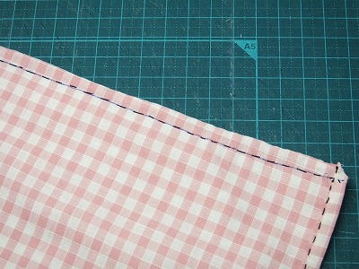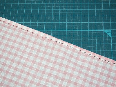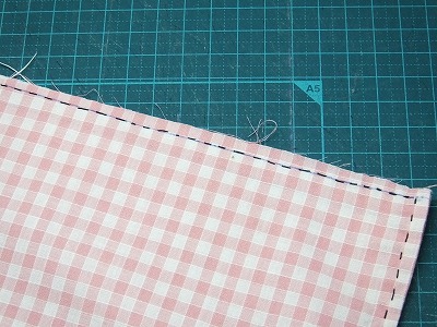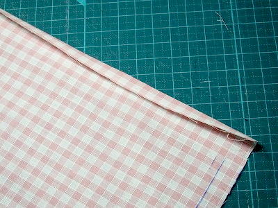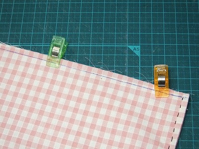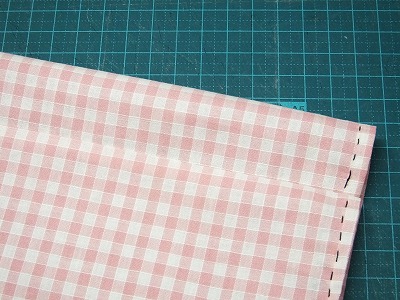 洗濯回数が多くなるので、ほつれ防止の為、両脇は二つ折りにして布端を隠します。真ん中の部分は袋縫いにして布端を隠します。